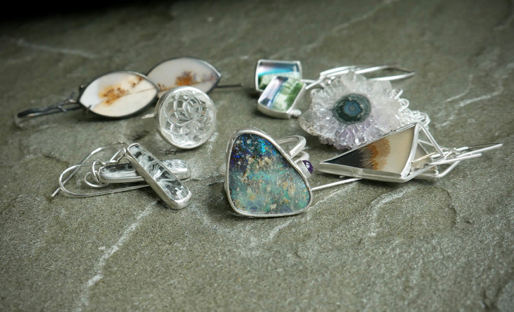 Root to Sky — A Pair of Highly Detailed Dendritic Agate Dangle Earrings in Sterling Silver and 14kt Gold