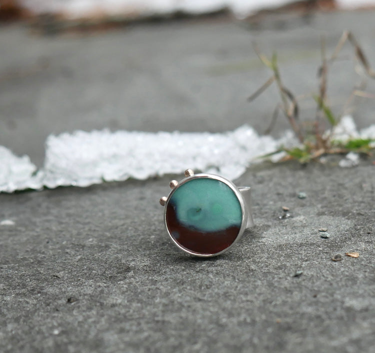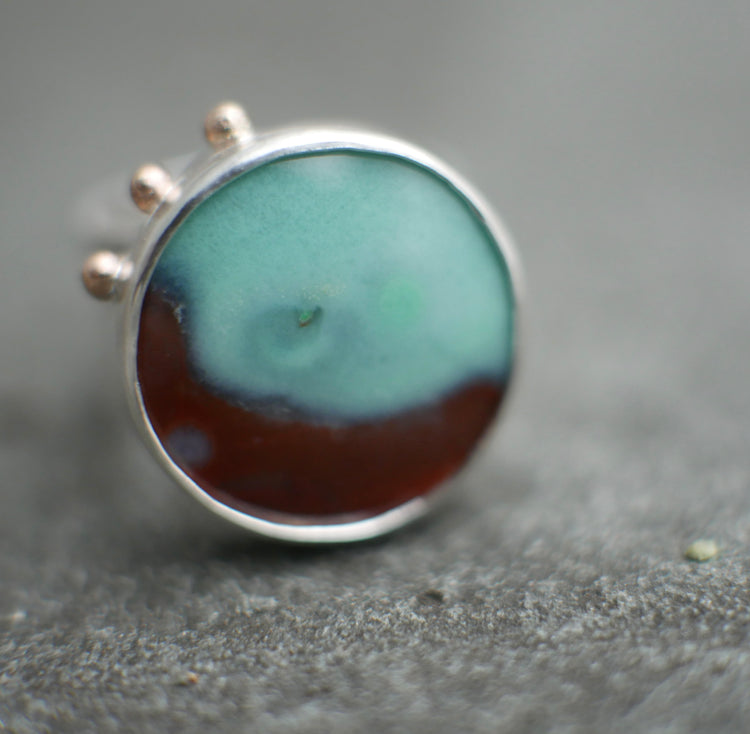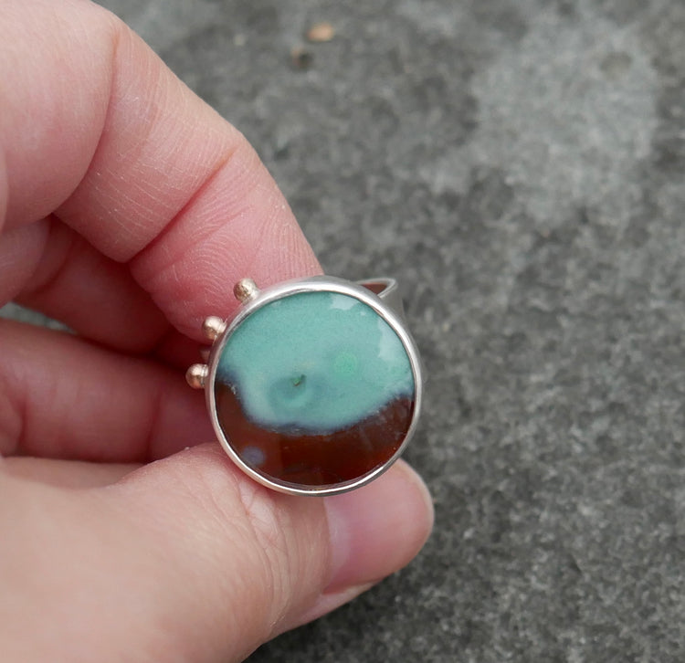 Eye of the Beholder — A Petrified Wood Ring in Sterling Silver and 14kt Gold — Size 6 3/4