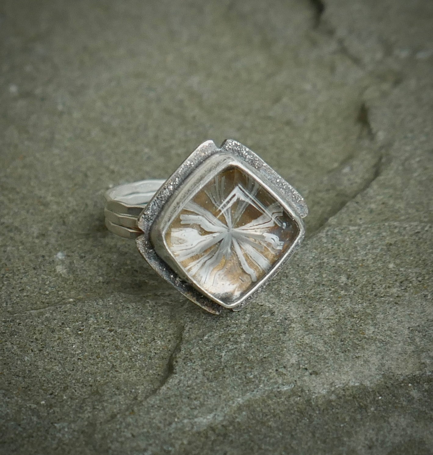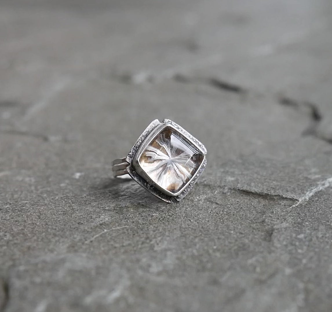 Frozen in Time: Ice Sculpture — A Bridewell Stone Ring in Sterling Silver — Size 7 1/2
