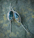 This mismatched pair, wrapped in a gold filled bezel, has been backed on Sterling Silver. The hand formed ear wires have been partially wrapped around the stones and fashioned so one back ear wire slightly curves in, while the other slightly curves out.