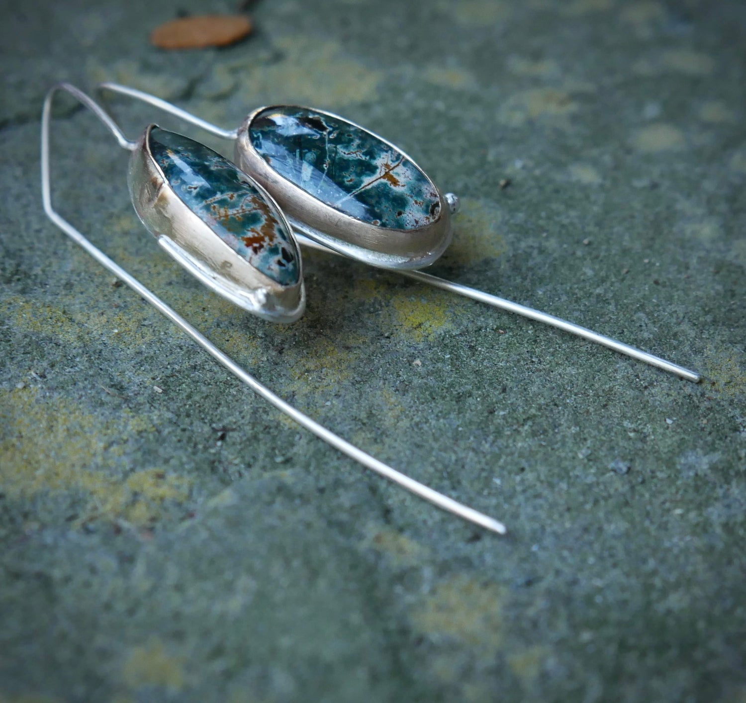 These are handmade and one of a kind. I have created these in an eco-friendly manner — from hand with no harsh jewelers chemicals and no power tools.