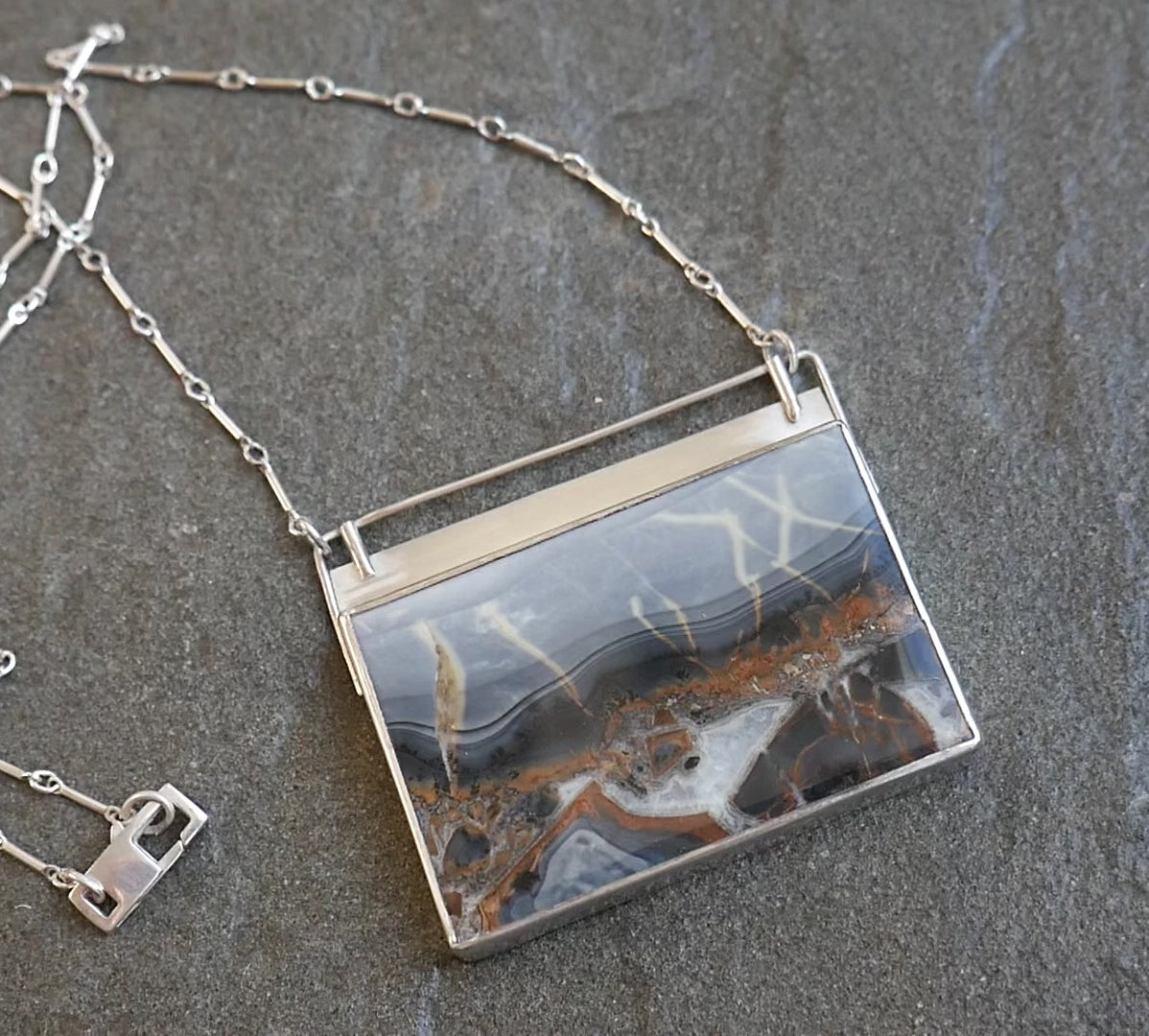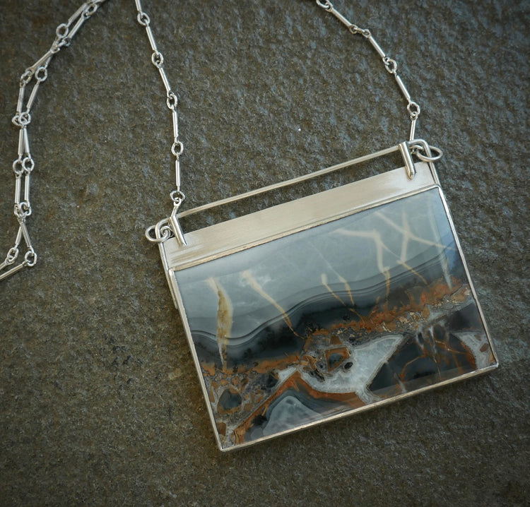 So beautiful. The stone is like a dreamy landscape that's so peaceful to look at. I love how this artist puts the moon and/or sun behind it. really sets off the piece. I definitely will be back to buy more pieces! And the the shipping was so lightning fast!!!!