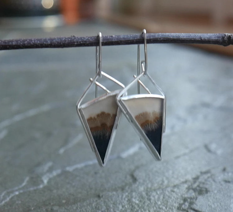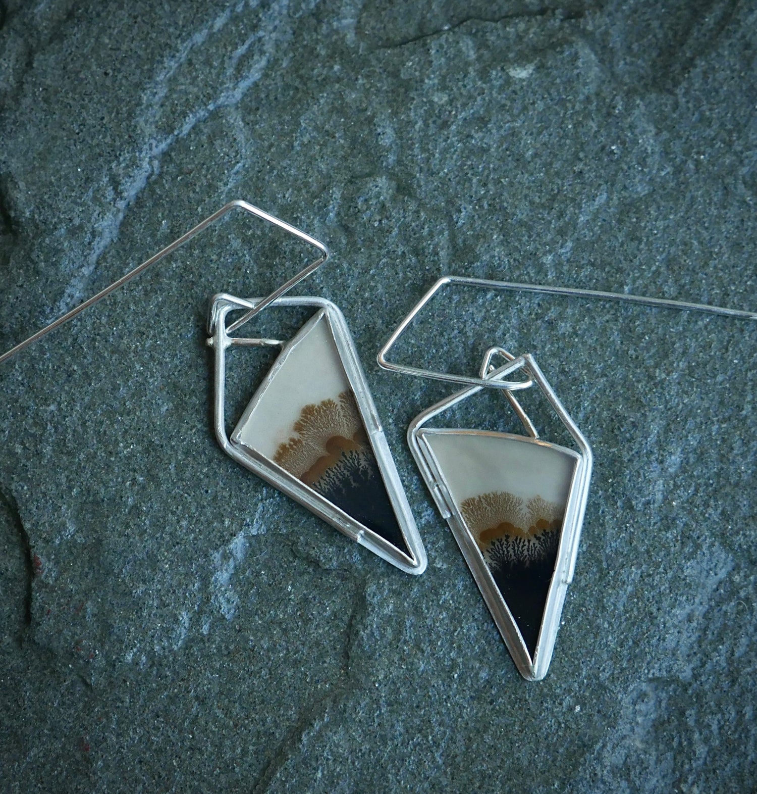 Root to Sky — A Pair of Highly Detailed Dendritic Agate Dangle Earrings in Sterling Silver and 14kt Gold