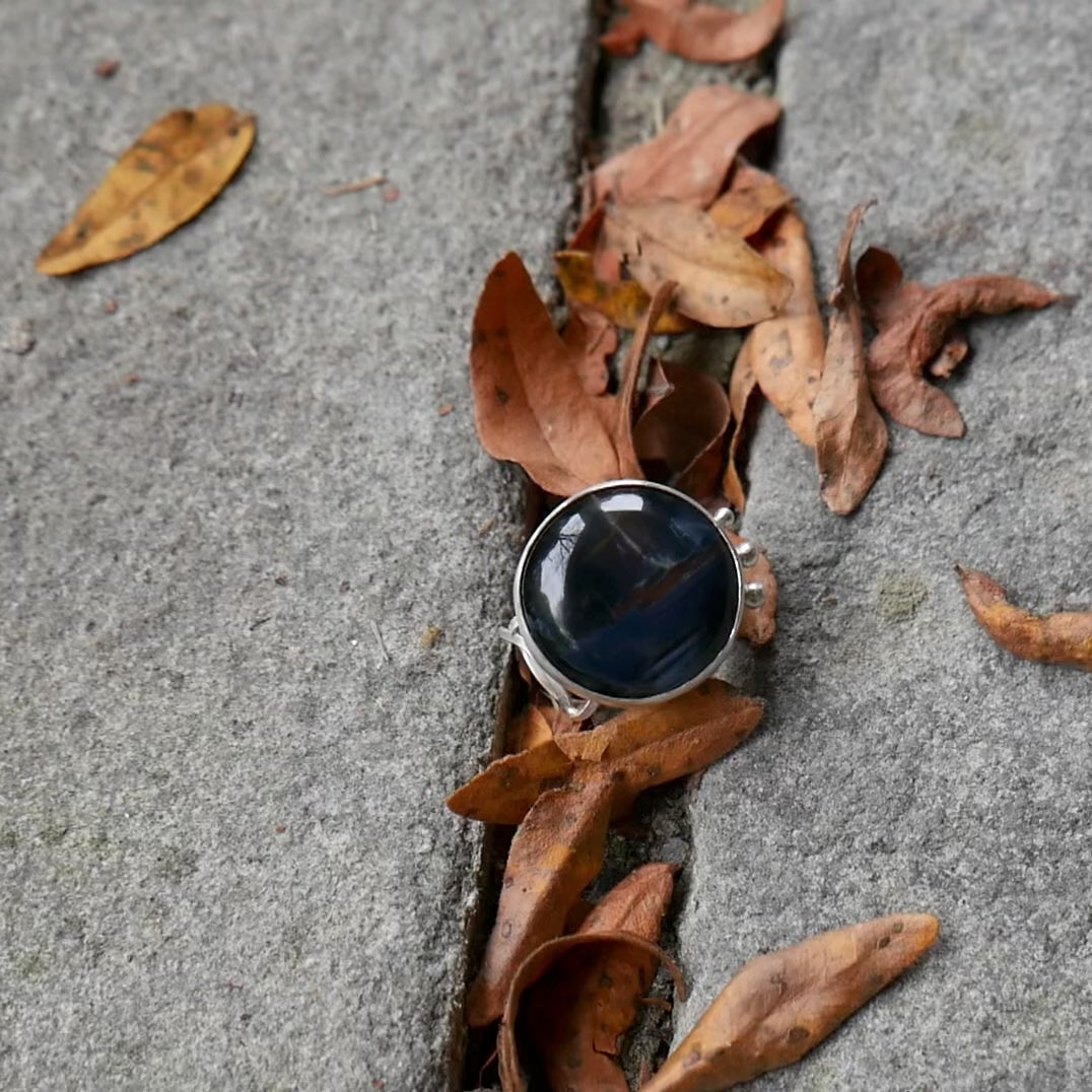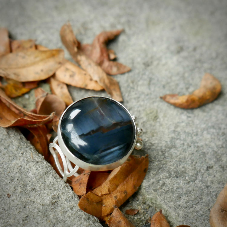 Storm in the Oasis — A Landscape Pietersite Statement Ring in Sterling Silver — Size 6 1/2
